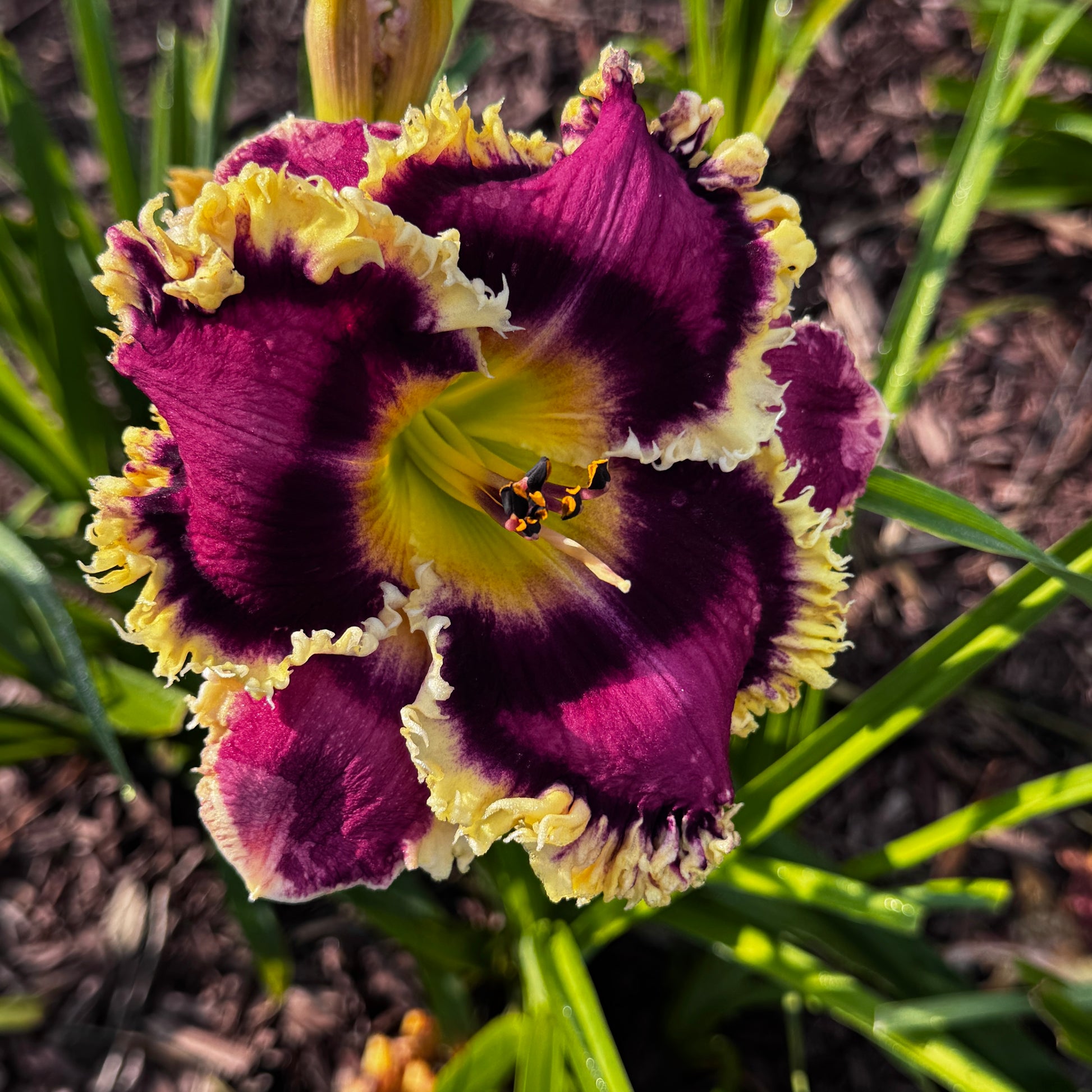 (G. Pierce). Evergreen. Early, Rebloom. 34″ scape, 6.75″ bloom. 6-way branching, 30–35 buds. Fragrant. Fertile both ways.